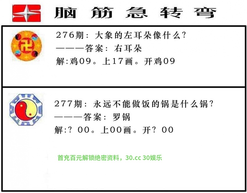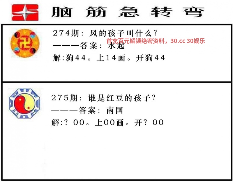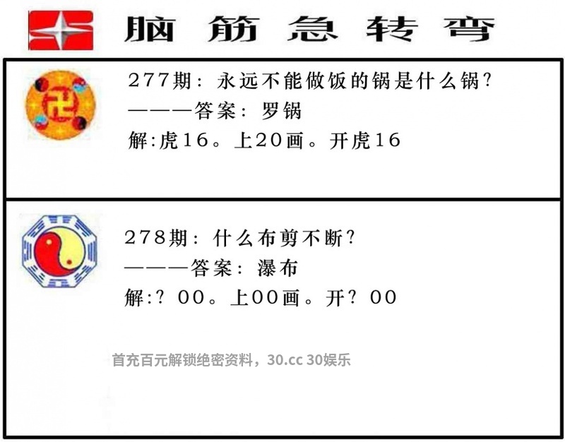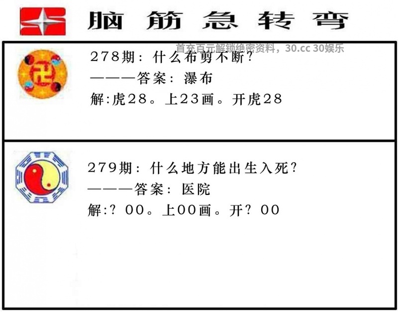 280期:猜字谜/有一说一诗/包不同送特/黄大仙欲钱料/最老版开门